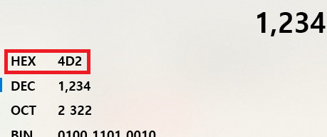 "1234"를 16진수로 변환하면 "4D2"입니다.
