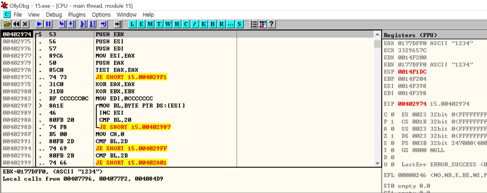 CALL 00402974의 내부 핵심코드 흐름