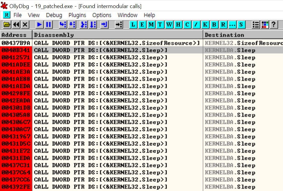 [Search for > All intermodular calls]에서 timeGetTime 함수와 Sleep 함수를 발견하였습니다.