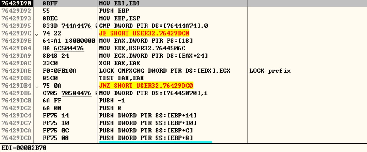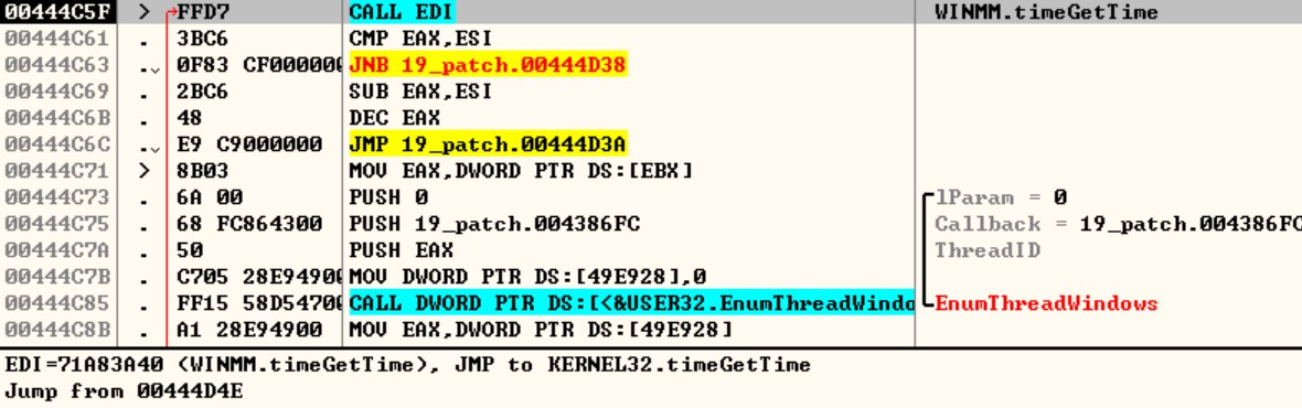 (00444C44에서 00444C5F까지 실행되는 동안 시간이 흐르기 때문에 EAX가 ESI보다 큽니다.)