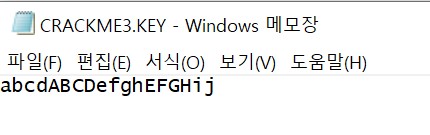 암호화의 원활한 진행을 위해 "CRACKME3.KEY" 파일의 문자열을 수정하였습니다.