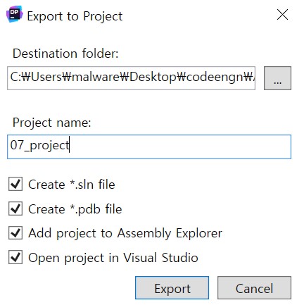 세 번째 단락 Serial을 00000000부터 ffffffff까지 넣어 If문의 조건 3가지를 만족하는 값을 일 경우 출력하는 코드를 추가하여 답을 찾아봅시다. 우선 코드를 수정하기 위해 Export to Project 해줍니다.
