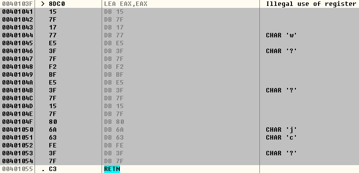 ; 0040103F ; 00401060 ; Illegal use of register |