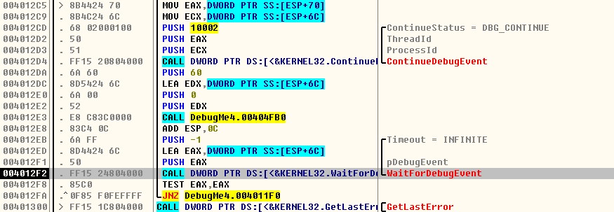 ; -Timeout ; -pDebugEvent ; WaitForDebugEvent() |