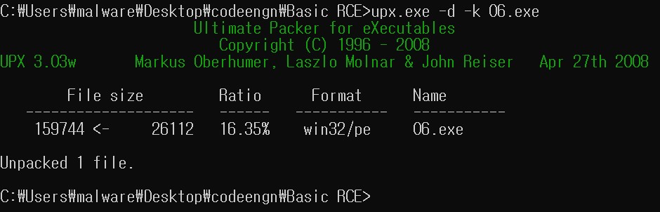 | [CodeEngn] Basic RCE L05 (+α UPX 패킹 상태에서 OEP 찾는 법) (0) | 2021.03.21 |
